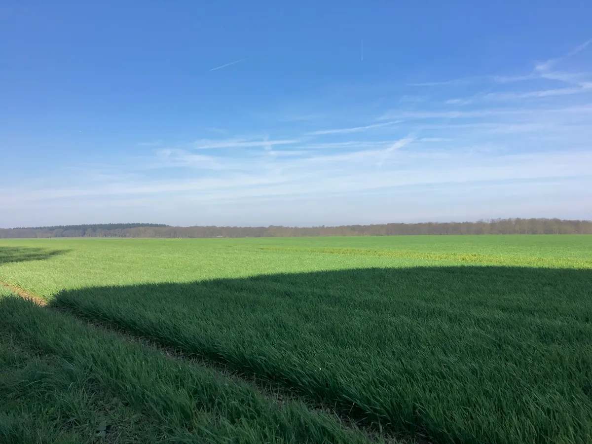 Je propose de tourner rapidement à droite pour rejoindre la forêt sur la petite route au milieu des champs.