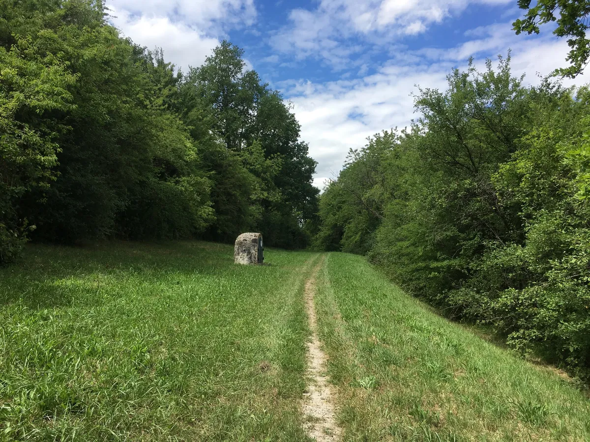 Vous atteindrez rapidement le chemin de l’aqueduc de la Dhuis (balisage GR 14A).
