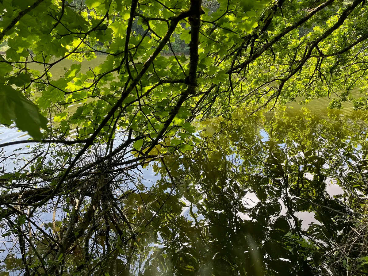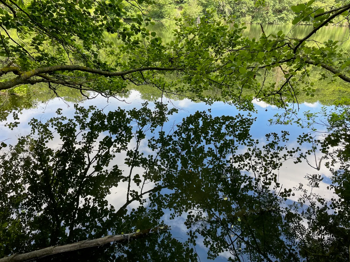 Il vous fera rejoindre l’Etang de la Geneste, peut-être le plus sauvage des trois étangs de cette randonnée. Soyez attentifs, car la faune y est abondante : foulques, hérons, biches, et même quelques écureils de Corée (chipmunks).