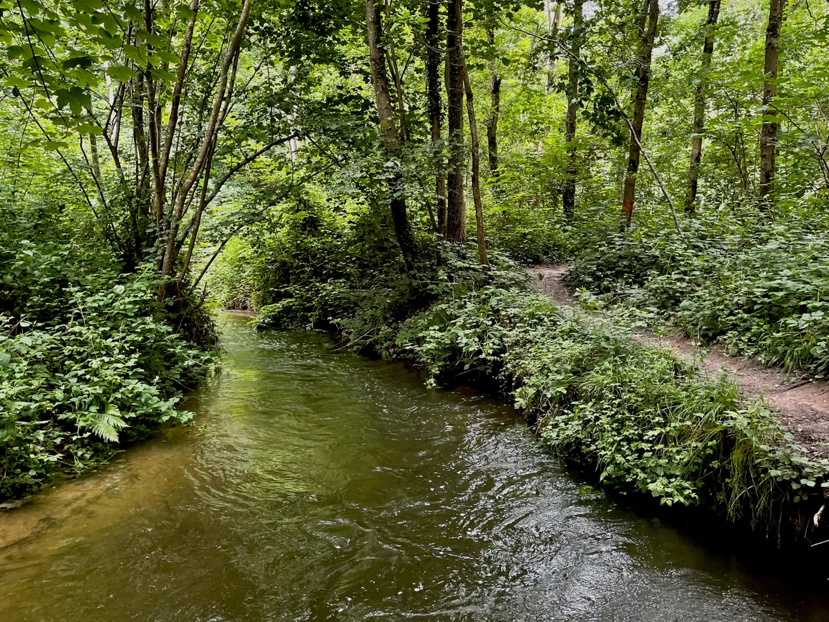 Une fois la D91 traversée, le chemin est un chouïa moins bucolique sur un petit kilomètre, mais vous rejoindrez rapidement un agréable petit sentier qui longe la Bièvre. Attention il peut être assez boueux et glissant, et il est un peu plus difficile sur certaines zones. Mais ce petit chemin peu emprunté est vraiment superbe !