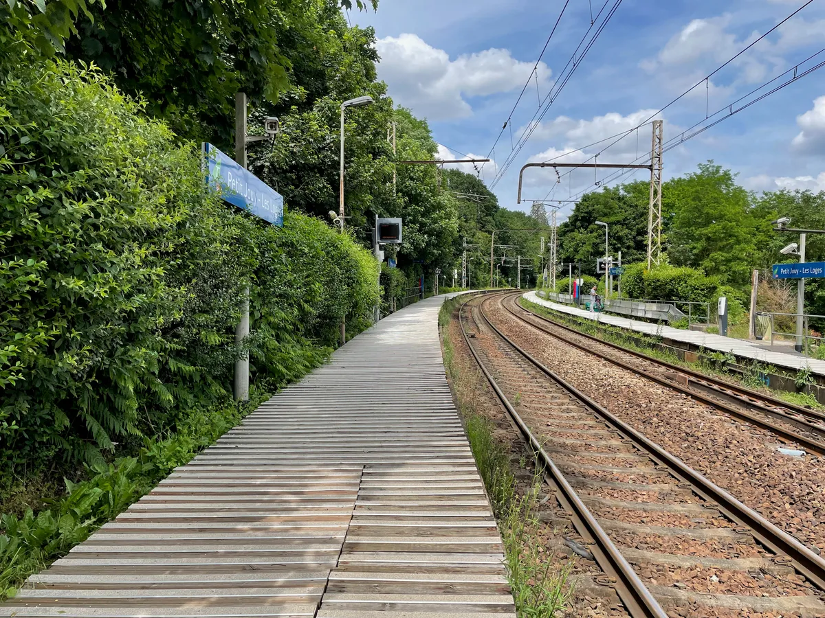 Le Chemin du Pré Saint-Jean poursuivra le long de la Bièvre en vous faisant traverser le petit village de Buc. Vous rejoindrez ensuite l’Aqueduc de Buc, construit au XVIIème siècle pour alimenter les fontaines du Château de Versailles. Encore quelques kilomètres en forêt, et la gare du Petit Jouy surgira au bout du chemin parmi les arbres. Il s’agit d’une minuscule gare de ligne V du Transilien.