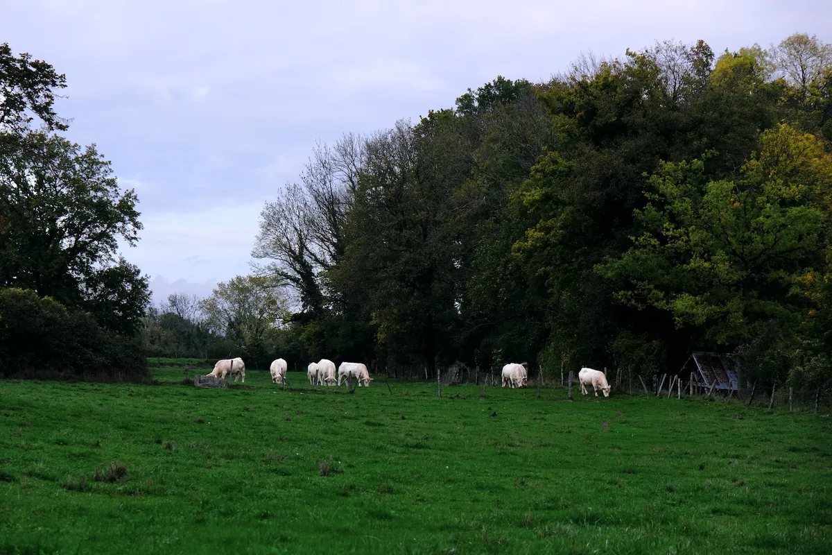 On poursuit en sous-bois en direction de Rouilly où se trouve la ferme de Rouilly-le-Bas, entourée de champs de pâturage avec des charolaises. Une ambiance paisible pour urbains en manque de calme et de vaches !