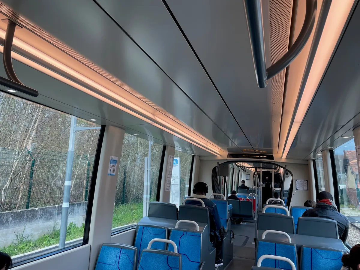 C’est donc le tramway T13 Express qui nous amène jusqu’à la gare de Bailly. Un tramway – ou tram-train pour être exact – flambant neuf, calme, mais aussi véloce avec ses pointes à 100 km/h. La ligne propose des correspondances avec le RER A (à Saint-Germain-en-Laye), le RER C et les lignes N et U du Transilien à Saint-Cyr et enfin avec la ligne L du Transilien à Saint-Nom-la-Bretèche.