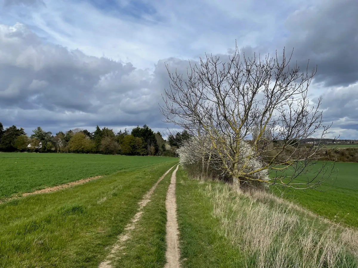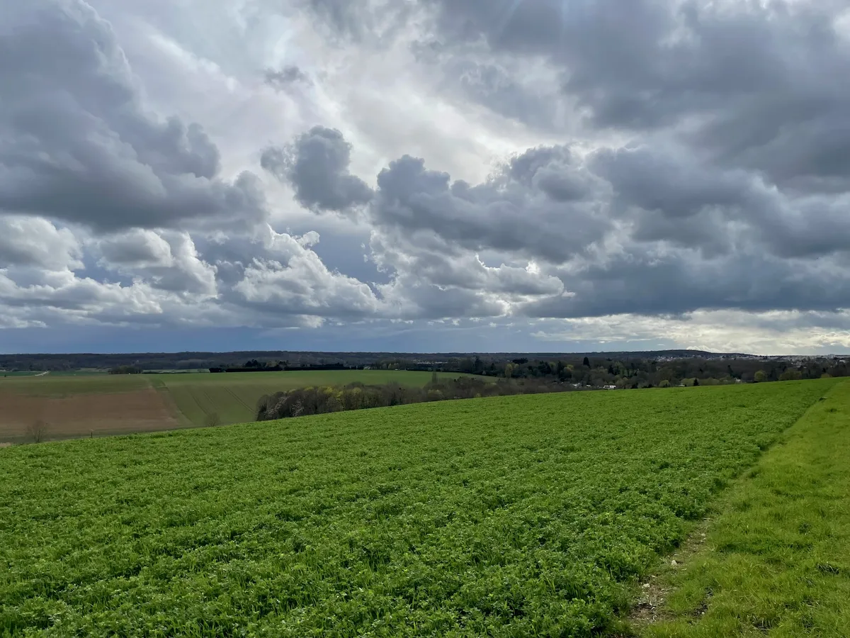 Au bout du chemin longeant le ru de Gally, vous reprendrez un peu de hauteur sur le chemin au marquage jaune. Nous avons bien apprécié les vues offertes sur les champs de la Plaine de Versailles.