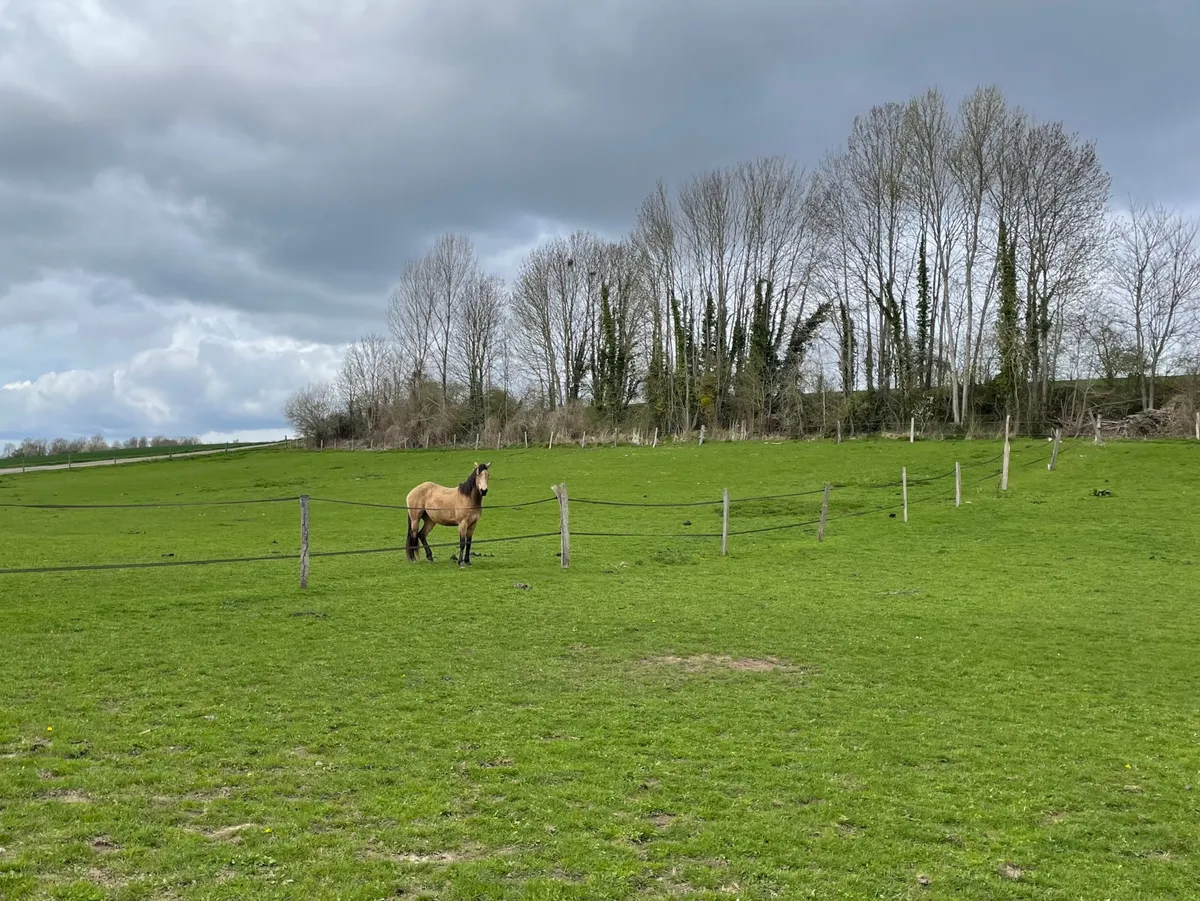 Alors que vous aurez tourné à droite (en suivant le marquage jaune, ou tout simplement la trace GPS), apparaissent les premiers vallons. Ne manquez pas le petit détour sur la gauche pour découvrir la ferme de Pontaly, proposant une vente d’œufs frais, un gîte et une jolie pension de chevaux que le chemin traverse.