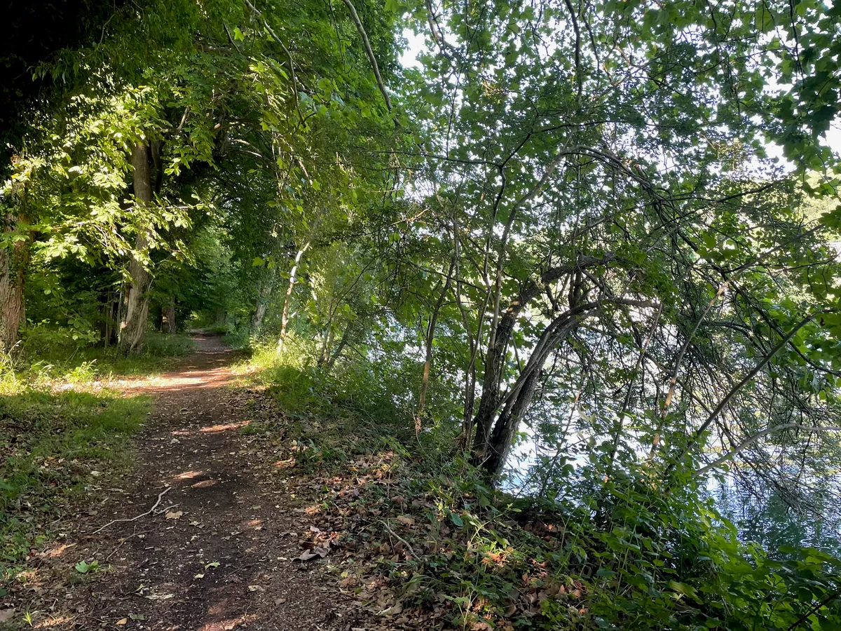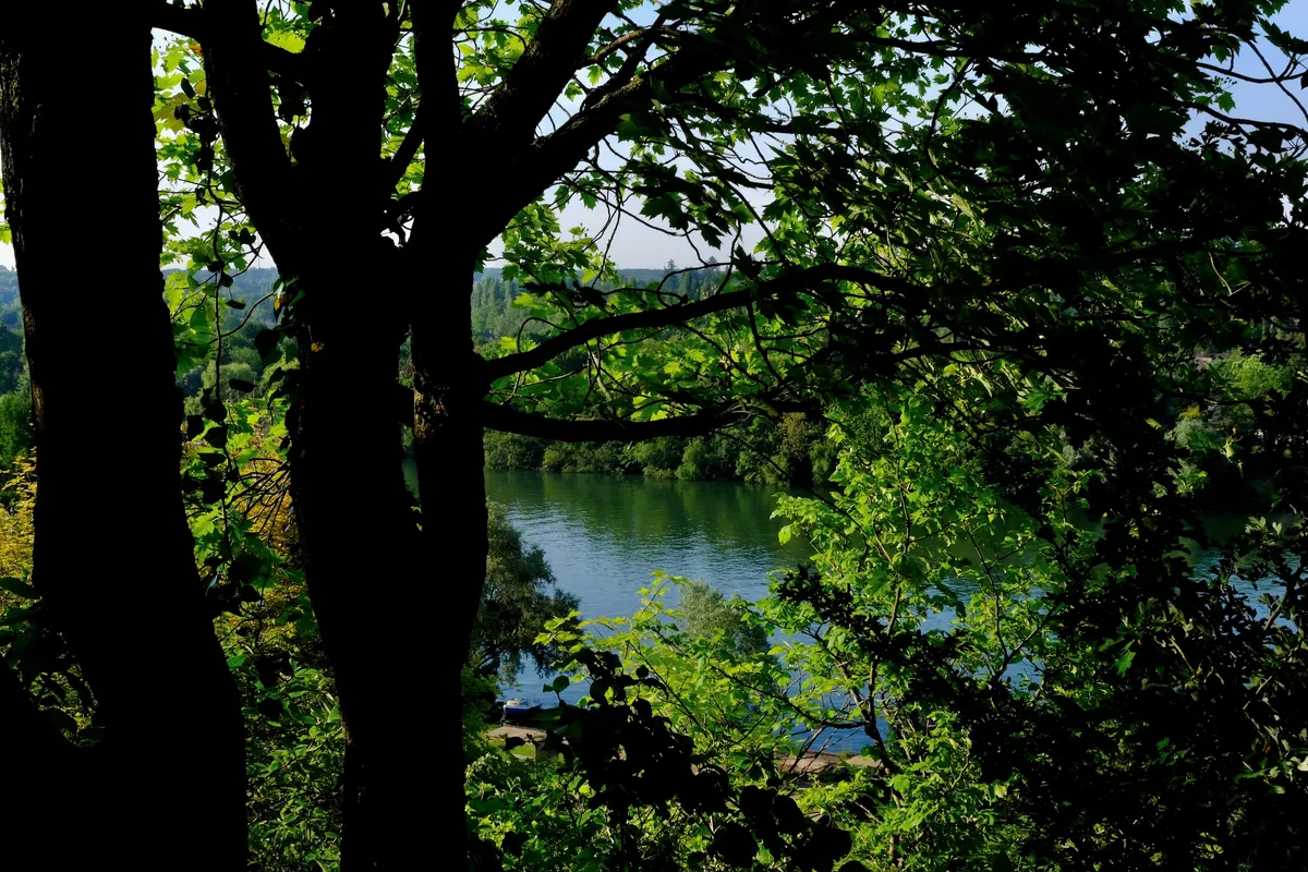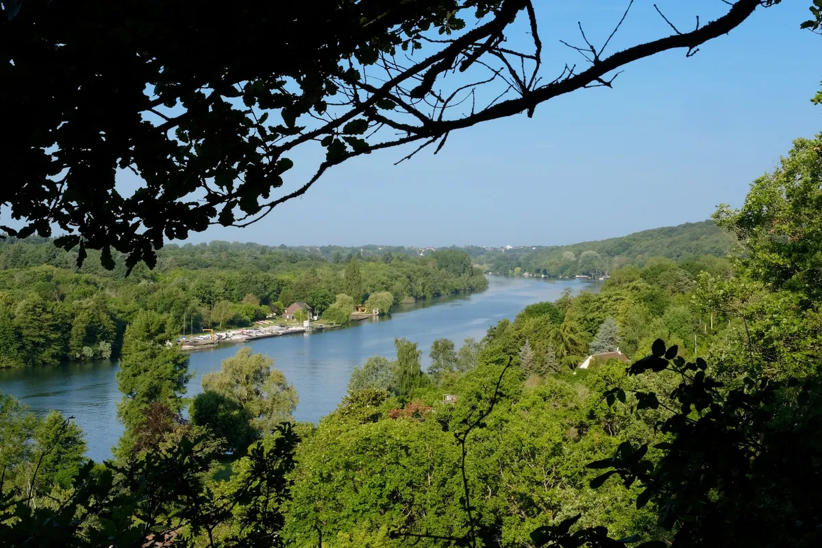 Le trajet redescend ensuite sur des chemins agréables — hors moustiques ! — à travers la forêt, pour ensuite atteindre un petit chemin tout étroit tout mignon en balcon qui offre de superbes vues sur la Seine.