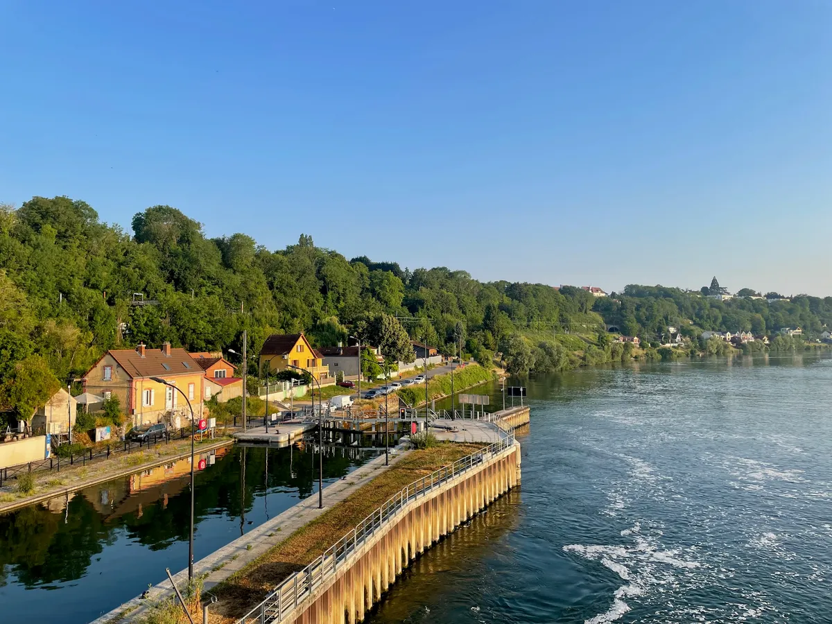 Vous retrouverez immédiatement la Seine en sortant de la station et rejoindrez l’écluse du Coudray-Montceaux dont vous emprunterez le pont pour traverser la Seine, avec une vue franchement sympa.