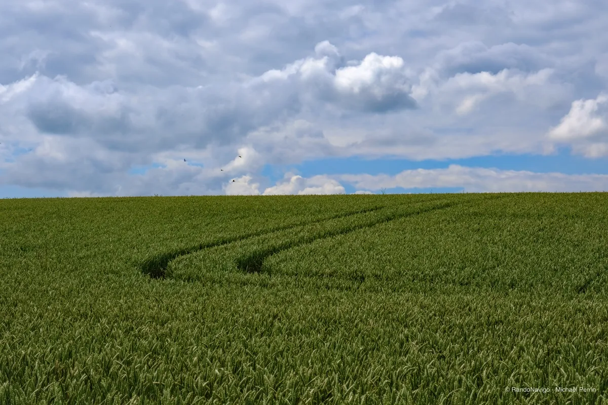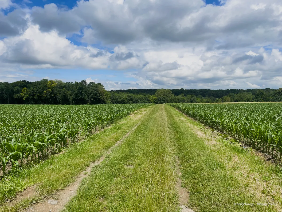 On démarre sur une petite route tranquille avant de rejoindre le Chemin de Paris entre les champs.