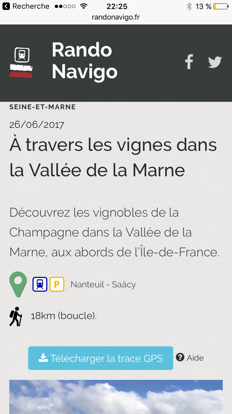 - Rendez-vous sur la page d'une des randonnées de RandoNavigo.