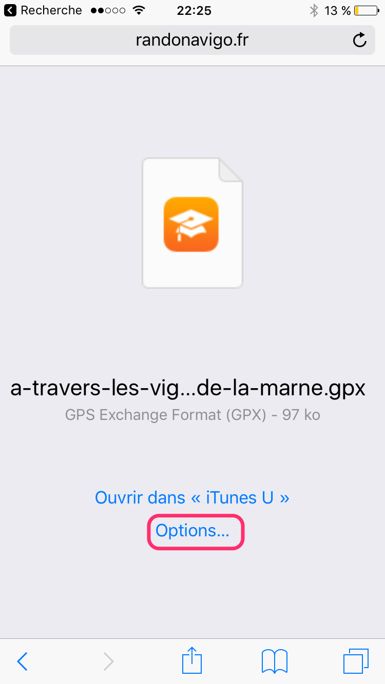 Voici la procédure pour charger un fichier GPX dans ViewRanger sur iPhone. Les étapes sont similaires sur Android.