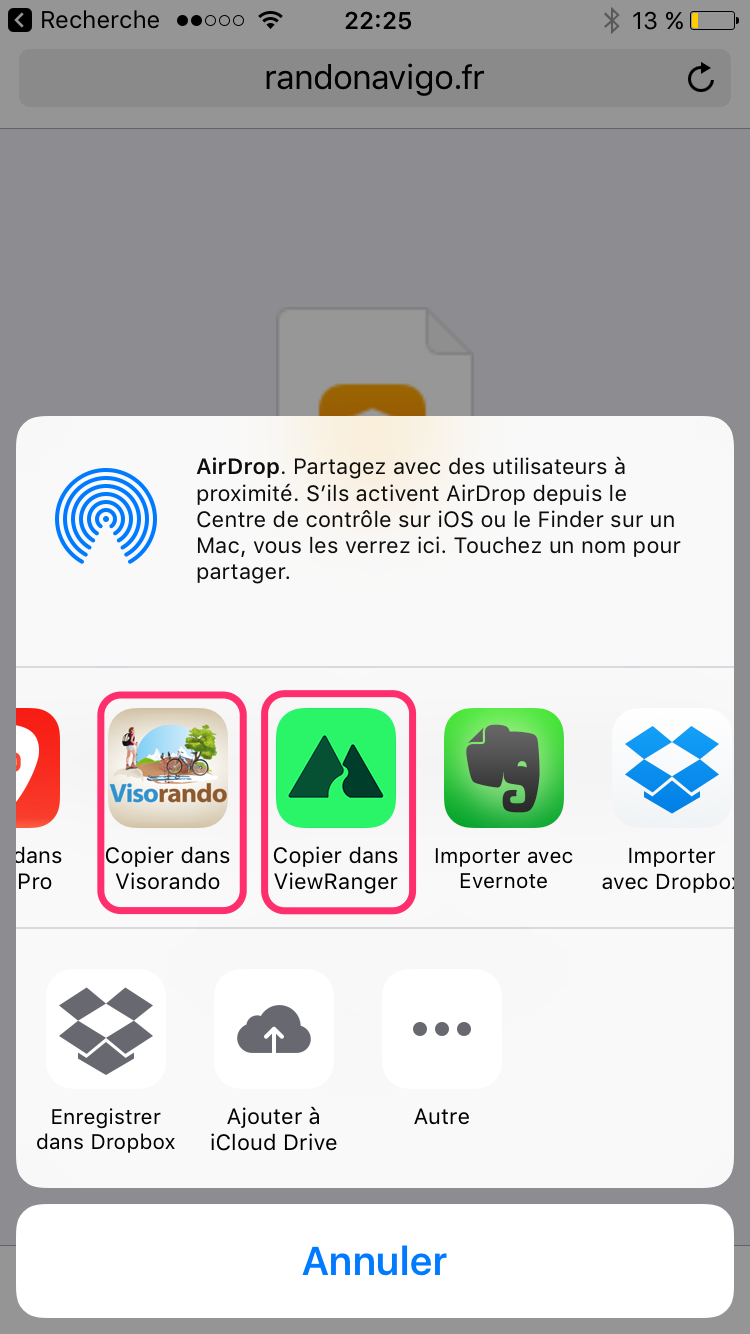 - Choisissez « Copier dans View Ranger » ou « Copier dans VisoRando »